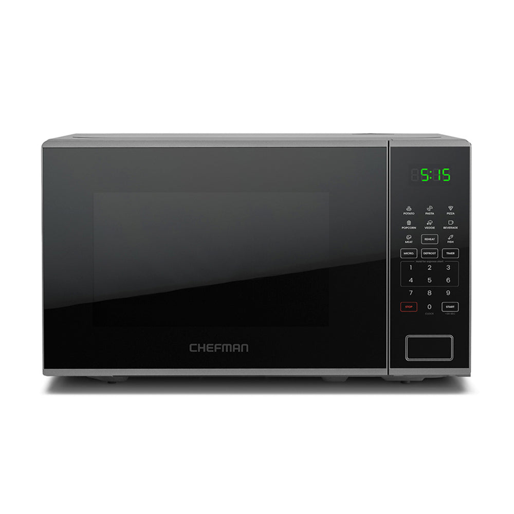 DISEÑO MODERNO Y ELEGANTE: acabado en acero inoxidable con plato giratorio extraíble, botones intuitivos y puerta de liberación a presión.