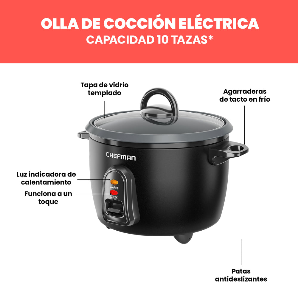 La Chefman Arrocera Eléctrica de 10 Tazas es la solución perfecta para cualquier cocina moderna, diseñada para facilitar tus comidas diarias con estilo y eficiencia. Con su capacidad generosa y su versatilidad, es más que una simple arrocera: es un auténtico ayudante culinario.