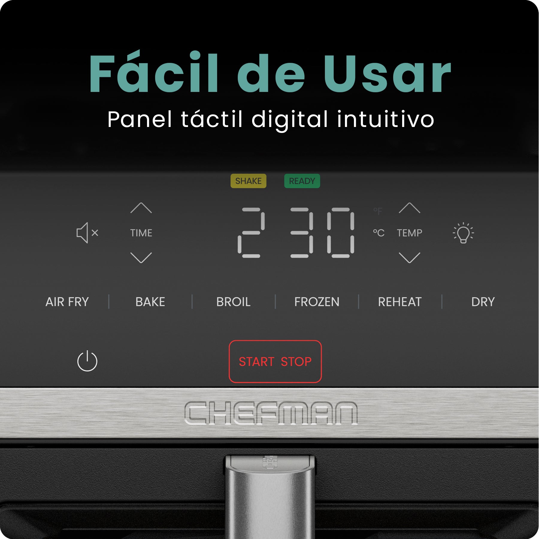 - POTENCIA DE CONVECCIÓN SUPERCARGADA: La evolución definitiva en freidoras de aire. Su motor de corriente directa de alta tecnología impulsa la Chefman TurboFry hasta un 40 % más rápido que modelos anteriores, alcanzando 232 °C para lograr alimentos más crujientes por fuera y tiernos por dentro.